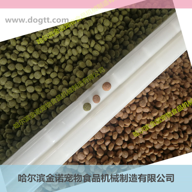 JNK2000型狗糧加工設備:1。狗糧顆粒機采用雙螺桿擠出結構,配備齒輪箱,油泵供油潤滑,140度蒸汽對原料調質處理,軟化纖維并增強熟化度;2。狗糧顆粒機每小時生產狗糧2000公斤,裝機容量132千瓦,同時出30粒狗糧膨化顆粒,狗糧加工設備通過更換模具可生產幾十種狗糧顆粒形狀。
