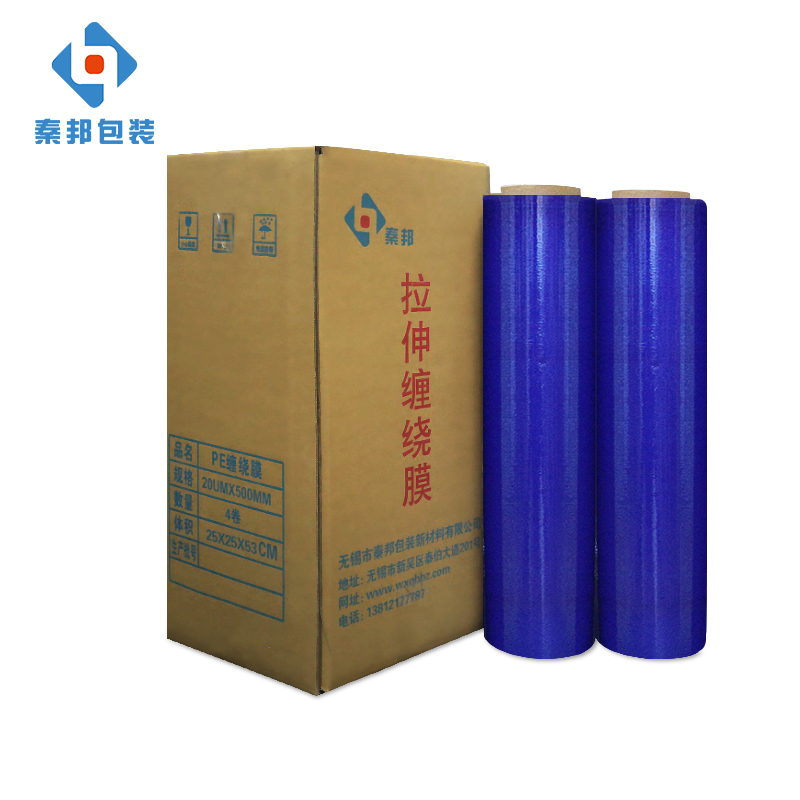 PE拉伸膜/纏繞膜,又稱LLDPE彈性膜/包裝膜,是一種透明、富有彈性及強度且無毒無害的柔軟聚乙烯塑料薄膜,符合國際環保衛生標準,可在不加熱的情況下,進行縱橫雙向冷拉伸,依靠它本身自粘性包裝各種產品,并可使貨物長期保持張力而不至于松散,強度高、彈性拉力大、對任何形狀的物品都能裹緊,裹成一個整體。拉伸包裝比收縮包裝節省材料,且不需要收縮包裝機節省能源;具有良好的防松散、防雨、防塵、防盜等效果。